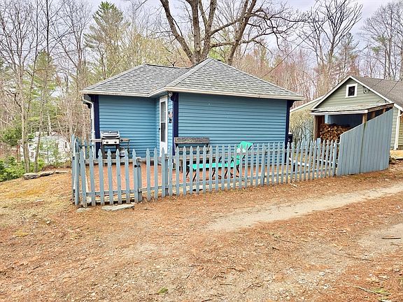 Welcome home to this charming, rustic bungalow w/ water views of Demond Pond! Living room has vinyl plank flooring, picture window, & exterior access. Large eat-in kitchen has updated cabinets, beamed ceiling, wood wainscoting, & wood stove that was installed 3/4 years ago. Bedroom has a wood ceiling, closet & lots of natural light. Bathroom has a tub/shower, built-in cabinets, skylight, & barn board walls. There is a convenient mudroom with built-in cabinets & room for another closet. The partial basement has washer/dryer hook-ups, work & storage areas. There is a forced hot air propane furnace, electric hot water heater, 100 amp CB, & roof is approx.5 yrs old. This home offers wonderful perks: a spacious backyard, perfect for all your entertaining needs~a shed that was a sauna & could be brought back to life~a front yard brick patio w/ views of the water~passing Title V~2 bedroom septic~an artesian well!! Pond is popular for fishing, boating, kayaking, etc...