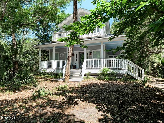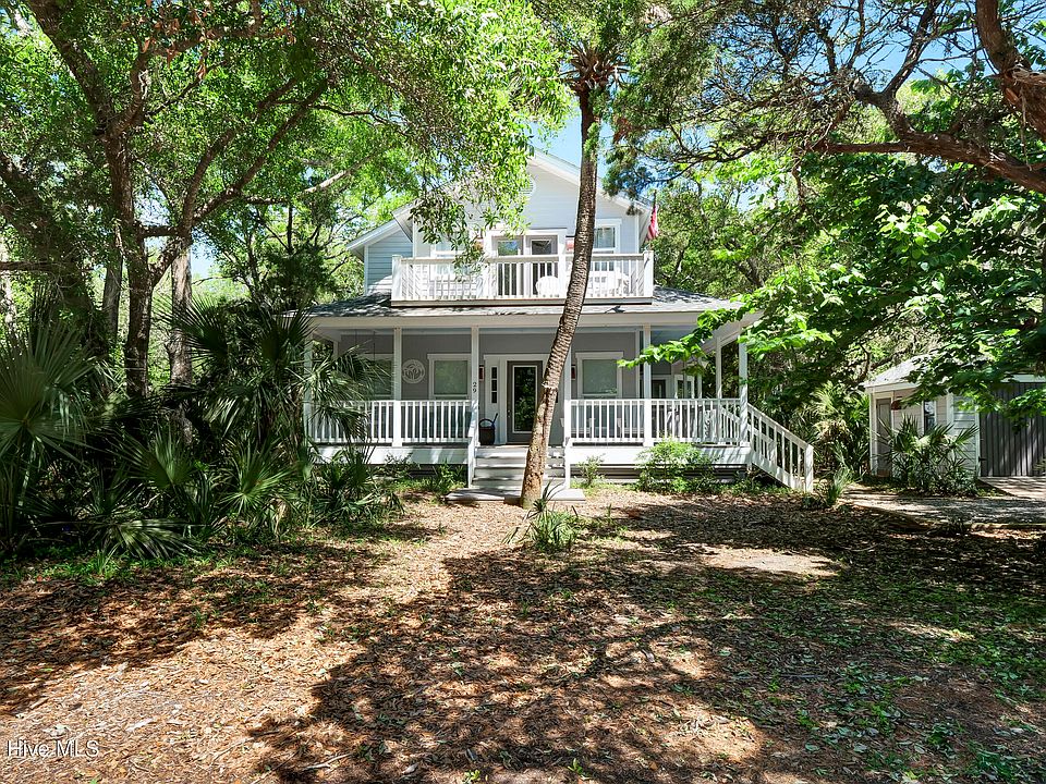 Discover the perfect island retreat in this charming coastal cottage, tucked away in the serene Maritime Forest of Bald Head Island. Surrounded by majestic live oaks and situated on a spacious lot bordering wooded Bald Head Association land, this home offers the privacy and tranquility you've been searching for. Wrap-around porches invite you to savor peaceful mornings with coffee or unwind in the evenings as coastal breezes drift through the trees. Just minutes from the beach, dining, and island shops, this fully furnished cottage is move-in ready and ideal for everyday living, weekend escapes, or effortless entertaining. Recently renovated, this Southern-style beauty blends timeless character with modern comforts. Inside, the living room features a cozy fireplace, while the chef-ready kitchen impresses with stunning quartz countertops and upgraded appliances. The sought-after first-floor primary suite includes a spacious ensuite bath with double vanities, a walk-in shower, and a generous walk-in closet. A proper laundry room (washer and dryer included) and a tasteful powder room complete the main level. Upstairs, three spacious bedrooms provide plenty of room for family and guests. A large hall bath with double vanities and a tub/shower combination offers direct access from one bedroom, while another bedroom includes its own private powder room for added convenience. Enjoy peace of mind with a new HVAC system and new hot water heater. After a day at the beach, rinse off in your private outdoor shower. A separate garage includes a new golf cart and grill, adding the finishing touches to this exceptional coastal getaway. A rare find of classic charm, modern updates, and the best of Bald Head Island living. Let this enchanting cottage welcome you home.
