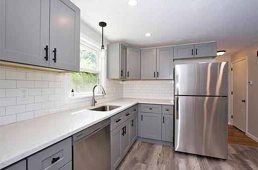 Welcome home to this tastefully renovated 4 bedroom 1.5 bath home in one of the most desirable neighborhoods in Witchcraft Heights owned by the same owner for 26 years and nicely maintained. Enjoy the brand new kitchen with lots of cabinets, SS appliances, quartz counter tops with an open concept and a direct access out to your nice size deck. Large front to back fire-placed living room with hardwood floors and half bath will complete the first floor. Upstairs you'll find 4 bedrooms with spacious closets and gleaming hardwood floors and a full bath. Close proximity to the schools, parks, shops, train and so much more. Partially finished basement with great potential and laundry, All of this with a 12000+ sf partially fenced in yard perfect for your summer fun.