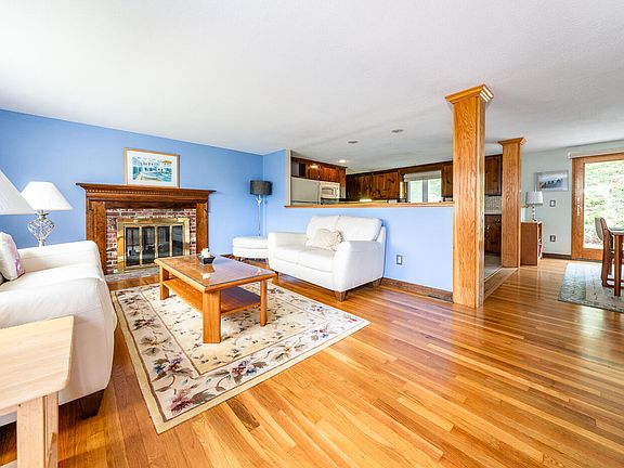 Spacious Ranch in Desirable Neighborhood!This beautiful 3-bedroom, 2-bath home offers everything you need for comfortable living on one level. Step inside and relax in the inviting living room featuring a double-sided gas fireplace that flows into a large den, perfect for cozy nights in or entertaining guests. Also included are gleaming hardwood floors, central air conditioning & 1st floor laundry. The large kitchen opens seamlessly to the living room and dining area, creating a bright and inviting space.Sliding glass doors lead out to a private backyard with a patio, perfect for relaxing or entertaining. An outdoor shower adds to the enjoyment of your outdoor space - perfect for rinsing off after a leisurely day at the beach.The attached one-car garage provides convenient parking, and a full basement offers plenty of storage space.Don't miss this wonderful opportunity!