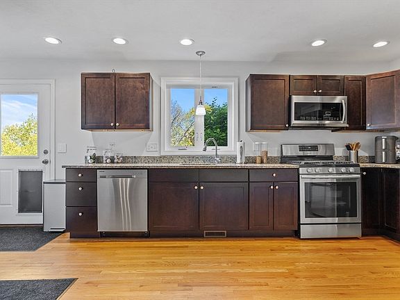 Stunning townhome in quiet cul de sac neighborhood perched above West Lynn with elevated views of the surrounding area. Expansive, well manicured & fully fenced in backyard overlooking a serene wooded landscape. Main level offers a bright & airy flow, consisting of a spacious living room, designated dining area & a very contemporary kitchen, highlighted with granite counters, custom dark wood cabinetry & stainless steel appliances. There is also a half bathroom & laundry on this level. 2nd floor features 3 well appointed bedrooms & 2 full bathrooms. Primary bedroom has a beautifully renovated ensuite bathroom & huge walk-in closet. Gorgeous custom lighting & hardwood floors throughout 1st and 2nd levels . A finished lower level, currently used as a 4th bedroom, could also serve as a perfect home office or gym. FULLY OWNED solar panels make electric bills virtually nonexistent!! Garage parking with 2 additional outdoor spaces complete this magnificent home.