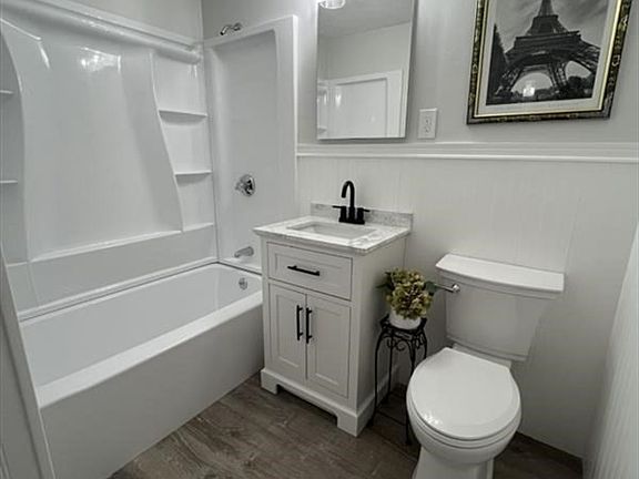 - Features: Bathroom - Full, Bathroom - With Tub & Shower, Flooring - Vinyl, Countertops - Stone/Granite/Solid, Low Flow Toilet, Wainscoting, Lighting - Pendant, Lighting - Overhead