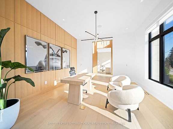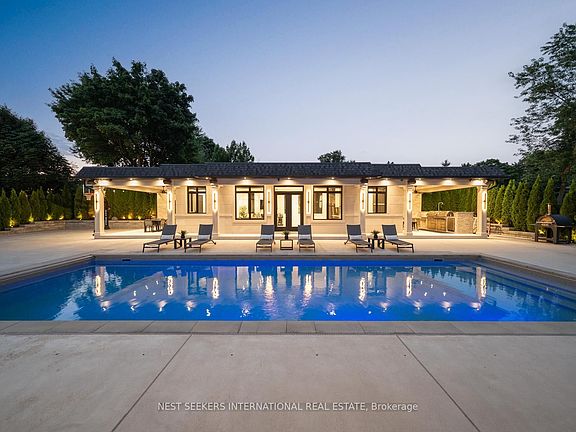 An extraordinary residence where timeless contemporary design meets uncompromising craftsmanship. Every detail has been thoughtfully curated and meticulously executed, offering you a dream home without the stress or delays of building. Move in just in time to enjoy the ultimate summer lifestyle. This architectural gem boasts soaring 14-foot ceilings on the main level, framed by rich solid white oak paneling and doors throughout. Designed for entertaining ,the heart of the home features a stunning chefs kitchen complete with a dramatic 12-foot custom wine fridge with over 300 bottle storage capacity, flowing seamlessly into a Four Seasons Lounge, a space designed to bring the outdoors in, year-round. The main floor Primary Bedroom Retreat offers a serene escape, combining elegance and comfort in perfect harmony. The lower level offers two additional bedrooms including a housekeeper suite, home gym, recreation room, built-in kitchen bar, and a state of-the-art home theatre, all powered by the latest Control 4Technology throughout the entire home for effortless living. Step into your private resort-style backyard, where luxury continues with a saltwater pool, a fully appointed pool house with kitchen, family room, and 3-piece bath, plus an additional outdoor bath and shower. Multiple lounge areas, a sports court, covered loggia, and a gourmet outdoor kitchen complete this exceptional lifestyle offering. This is more than a home, it is a statement. Its where sophistication meets comfort, and every day feels like a vacation.