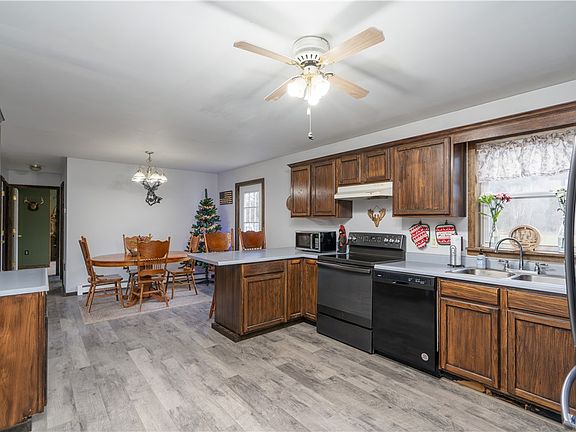 Super Cute Ranch Style Modular home!!! Take a look at this Updated, 2 bedroom, 1 Bathroom, Awesome property!!! This home is MOVE IN READY!! Really Big Bright OPEN Concept Kitchen with an Eat-in area, along with a breakfast bar, Nice Appliance package, freshly stained cupboards AND BEAUTIFUL BRAND NEW Laminate flooring!! Spacious living room with bright sunlight and lots of moving around space!! This home features 2022 Navien Boiler, 200 Amp service, Egress to walk-out doors, completely insulated ceiling, metal roof aprox. 5 years, and bonus space to a pull down attic! Property is in flood zone and seller pays estimated $548.00 in insurance yearly.