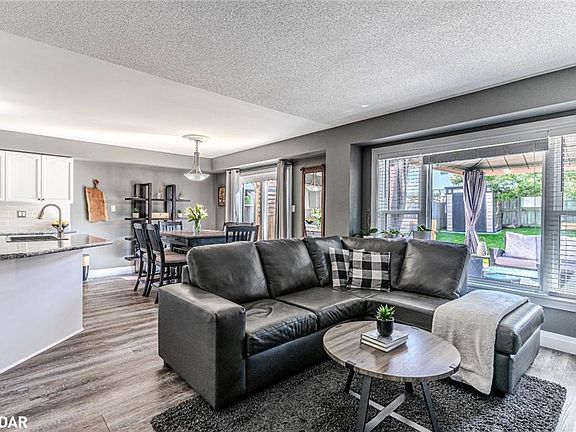 UPGRADED FAMILY HOME ON A QUIET COURT IN PAINSWICK, WITH A SUNLIT OPEN LAYOUT & A PRIVATE BACKYARD HAVEN! Situated on a quiet court in South Barrie’s desirable Painswick neighbourhood, this beautifully maintained home combines everyday convenience with family-friendly charm. Surrounded by welcoming neighbours and just minutes from schools, parks, the Sadlon Arena, and the bustling Park Place shopping centre, you’ll also enjoy being only 10 minutes from Kempenfelt Bay for waterfront recreation. Commuters will love the easy access to public transit, the Barrie South GO station, and Highway 400. The beautifully landscaped lot sets the stage with a fully fenced yard, a large deck with a gazebo lounge, a mature tree for shade and added privacy, and a garden shed, with ample green space offering room to relax, entertain, or play. An attached garage with interior entry, additional driveway parking, and a charming covered front porch add both convenience and curb appeal to this inviting home. Step inside to a bright open-concept main floor, where large windows and a sliding glass walkout fill the generous living and dining areas with natural light, and the well-equipped kitchen features a breakfast bar, pantry storage, and newer appliances. The upper level showcases three sunlit bedrooms with spacious closets, including a primary with semi-ensuite access to the family 4-piece bathroom. The partially finished basement extends the living space with a versatile recreation room, a bar area, laundry facilities, and ample storage. Recent updates such as refreshed windows and doors, an upgraded furnace, a newer rental hot water tank, and custom window coverings throughout ensure both style and peace of mind, making this an incredible #HomeToStay!
