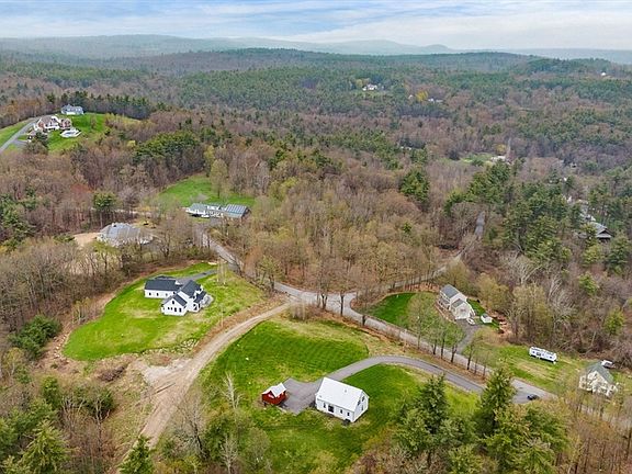 Introducing a modern farmhouse cape style home designed with an open concept and soaring ceiling heights. Quality finishes abound, from cement siding to spray foam insulation, engineered hardwood, and tile. The 1st floor showcases an impressive kitchen with a custom cathedral ceiling, oversized concrete island, quartz countertops, ss appliances, and a farmhouse sink. The living room, seamlessly connected to the kitchen, features walls of windows and a convenient built-in drop zone. A real first-floor primary suite boasts a WIC and a private ensuite with a tiled walk-in shower and double vanity. Completing the main level is a charming office with a built-in desk, a 1/2 bath, and laundry. Ascend the modern cable railing staircase to additional bedrooms (2) and a beautiful full bath also with tile and quartz. Outside, enjoy the expansive 2+ acres of green space with captivating views, accompanied by an oversized custom-built shed. County dream living with its meticulous craftsmanship!