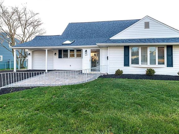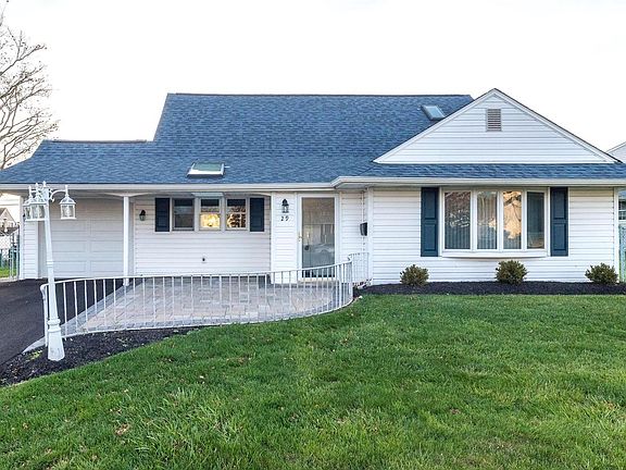 Welcome to 29 Hope Road in Levittown, located close to shopping and major routes.. This meticulously, cared for dormered, three bedroom, two full bathroom and aan addition offers loads of finished square feet. Featuring a new roof, brand new driveway and paver walkway, new main line sewer pipe and more. A large great room addition on the main floor for an office, workout room, convert to a bedroom.... loads of possibilities. This move-in ready home provides comfort, space and practicality. Enter the front of the home through the warm vestibule boasting new doors. The main level features an updated kitchen with modern finishes, granite countertop, newer cabinets and baby blue color backsplash. The primary bedroom on the main level features a walk in, a second large closet, linen closet and a full bathroom. In the hallway with the bathroom is a large linen closet for additional storage. Completing the main level is the dining area, family room with the coat closet and an additional closet, laundry room and access two ways to the garage. The laundry room / utility room on the main floor features a white washer,dryer and shelving for storage. The dormered second floor creates generous bedroom space for generous sized bedrooms and closet space, improved ceiling height and a comfortable layout. Both of the bathrooms have been updated to complete this move in ready beauty. The garage provides additional storage with a cedar closet. A covered backyard patio and a fenced in lanscaped, yard for all of your relaxing and socializing needs. The driveway has recently been resurfaced and NEW pavers complete the exterior upgrades. The brand-new roof delivers added peace of mind for the next owner. The homeowner has maintained the heater with regular service / maintenance and replaced the sewer line. There are many beautiful upgrades and touches throughout. A wonderful opportunity to own a thoughtfully improved property in a convenient location.