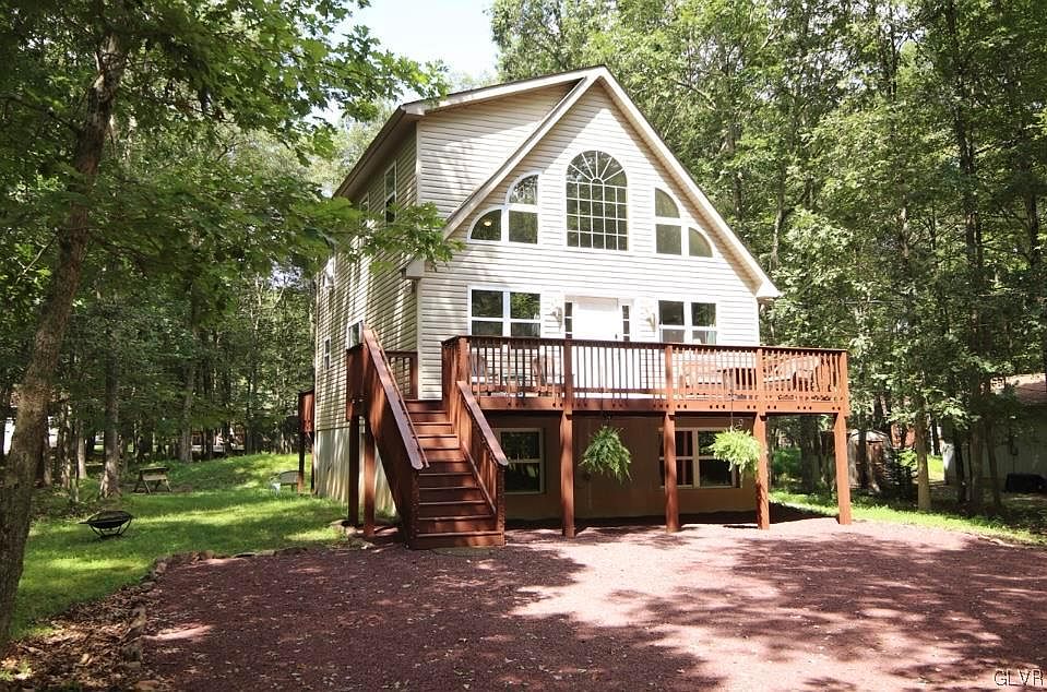 Here's your opportunity to own a lovingly-maintained, 3 LEVEL CHALET surrounded by trees in amenity-rich and STR-friendly TOWAMENSING TRAILS! Located about a mile from 190 acre Wolf Lake, this gem is an ideal home base for all your POCONO adventures from skiing (Big Boulder is less than 15 min. away) to hiking to white water rafting. House features include low maintenance vinyl siding, 2 spacious decks, large CIRCULAR DRIVEWAY, 2 stone gas FIREPLACES, upgraded "rustic" banister, LOFT, cathedral ceiling and FINISHED BASEMENT/game room. Plenty of natural light, storage and space to spread out. Built in 2010 and comes FULLY FURNISHED for a truly TURN KEY investment. House has been a successful short-term rental. Towamensing Trails is a PRIVATE COMMUNITY boasting 24 hour security, full-time maintenance and administrative team, bball and tennis courts, lake with sandy beach and boat rentals, outdoor pool and Clubhouse with bar and restaurant. Seller is a licensed PA Realtor.