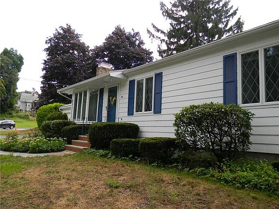 Custom Ranch in a lovely setting. Boasts a large eat in kitchen, which leads to a deck and private yard. Formal living room with a stone fireplace, dining room or family room. Three spacious bedrooms, updated bath and half bath. Hardwood floors, finished lower level with laundry room, workshop and storage, great extra living space. One car attached garage. New roof, heating, electrical mechanics, windows. Pride of ownership in this one owner home.