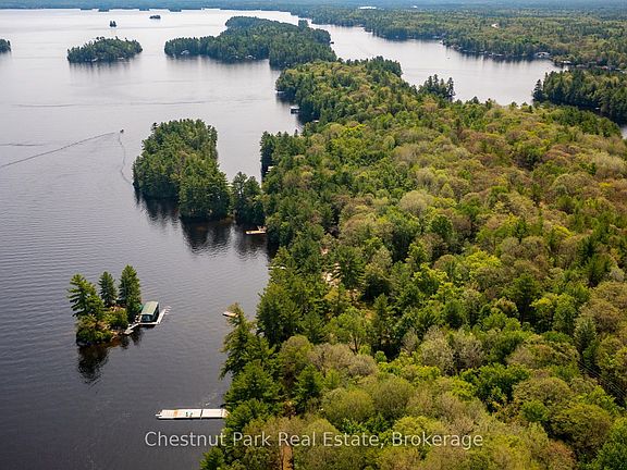Come discover Muskoka's enchanting landscape! This extraordinary private 11-acre parcel of land unveils itself as a unique majestic place amidst the scenic panorama of Lake Muskoka. Nestled among 800 feet of shoreline with coveted CW-8 zoning, this historically significant commercial island property boasts a rich heritage, tracing back to the iconic Glen Echo Lodge, which flourished from 1898 to 2003, a historical cottage resort with 26 bedrooms. It's like stepping into a cherished storybook where history still exists and is known by many on the lake. Whether embracing the tradition of seasonal Island living with family and friends or embarking on a development journey to create a private family compound or tourist establishment, this property offers a boundless canvas of potential. Meandering pathways adorned with flagstone accents lead to a cluster of seven original cabins, each close to one another on the south side of the property. The lay of the land is gracefully accentuated with natural granite rock, slight elevation changes and an expansive open field while having panoramic views of Lake Muskoka, punctuated by the quaint silhouette of nearby islands. A collection of seven snug cabins awaits, with five meticulously refurbished to exude a charming rustic cottage vibe. Among them, a combined Kitchen, Living, and Muskoka Room cabin boasts an elevated deck offering picturesque views of the lake. Additionally, there are five cabins with bedrooms, two bathrooms, laundry facilities, a work shed, and one original cabin situated at the water's edge, its unique footprint holding intrinsic value. Fronting on 800 feet of pristine Muskoka shoreline, graced by two existing docks and a charming flagstone waterside patio, this haven invites one to envision summer on the lake. Come discover a wonderful offering on the north side of Taylor Island, where privacy meets opportunity.