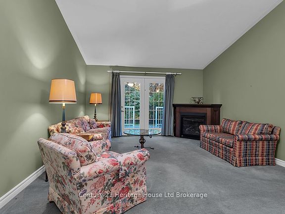 Discover the perfect blend of comfort and convenience in this bright and inviting 2 bedroom 3 bath townhouse nestled on a ravine lot in the desirable adult active lifestyle community of Hickory Hills. The peaceful back yard backs onto the ravine so you can sip your morning coffee or tea out on the low-maintenance composite deck and enjoy nature! The main floor consist of laundry area, a bedroom at the front that can be used as a den or office, kitchen with hardwood floors and french pocket doors leading to the open concept dining and living room as well as the large primary bedroom complete with ensuite bathroom with walk in shower. The large living room/dining room area features a cozy gas fireplace, vaulted ceilings and two large skylights allowing lots of natural light to fill the space. Downstairs has lots of room to entertain in the finished rec room complete with electric fireplace to keep it cozy, bathroom as well as a bonus room with walk in closet currently set up as a spare bedroom. While the decor on the main floor is ready for your personal touch, new flooring (with the exception of current hardwood in some rooms) and a fresh coat of paint will bring this gem back to life. It's easy to envision the potential here and with the maintenance fees ($244.08 per quarter) covering the lawn maintenance and snow removal, this home is convenient and worry free. Current annual Hickory Hills Residents Association fee is $655/yr and buyers must acknowledge one-time transfer fee of $2,000. Membership provides you with access to the Hickory Hills Recreation Centre including outdoor pool, hot tub and other amenities. Please note that this community is low density permitting only two occupants per home.