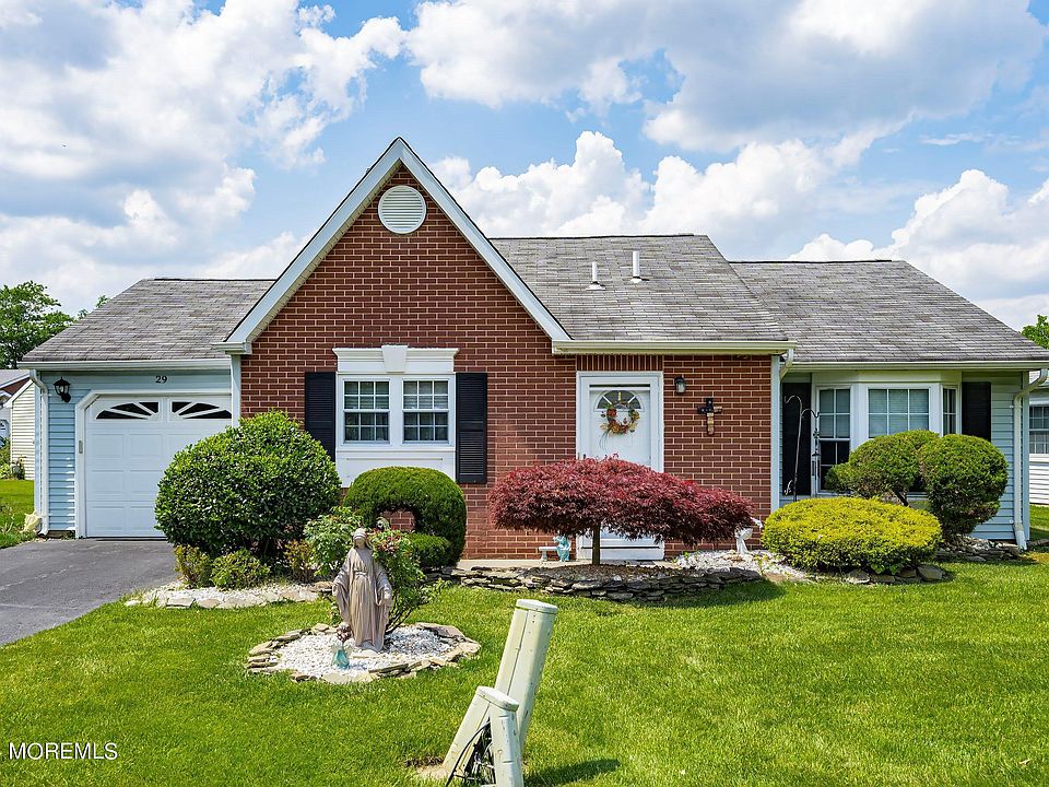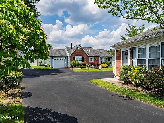 Surrey Downs Active Adult Community Single Family Ranch in Freehold. This brick front homes features 2 beds and two full baths with a den and garage. Drive up to your cul-de-sac and enter into your tiled foyer and front hall closet. The eat in kitchen leads to laundry room and attached garage with attic access. Oversized Dining and Living boasts cathedral ceilings with recessed lighting. Den offers an optional room to work or sit & read which overlooks your outdoor private patio. Master bedroom with bay window & updated master bath. Main bath with tub and second bedroom complete the space. Come enjoy the good life up at the clubhouse. Endless outdoor/indoor activities. WORRY FREE LIVING!!!