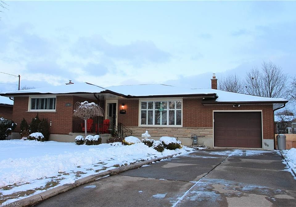This well kept 3 bedroom, 2 bath brick bungalow situated on a pool-size fenced in yard is in a prime location in the north end of St. Catherines. Noteworthy features of this home include; refinished hardwood floors, cove molding in the living room, large & bright windows with California shutters & open concept kitchen (great for entertaining). The lower level of the home features spacious recreation room with wet bar & gas fireplace, 3 piece bathroom, office, laundry room & even a cold room. There is a separate entrance inside garage that allows access to the finished basement level. Recent updates include: new furnace (2017), central air (2017), owned hot water tank (2015) & chimney (2020). You will be sure to love the roomy concrete driveway for multiple cars plus the attached garage. Around the back of the home there is an interlock patio & garden shed with concrete base.