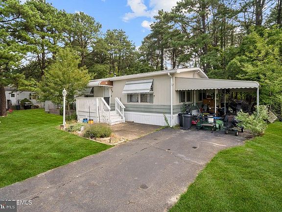Discover affordable living in the Pine Ridge Adult 55+ Community. This mobile home features 2 bedrooms and 2 full bathrooms, nestled in a serene setting with a private backyard and scenic views. The community offers amenities such as a common area, shuffleboard and an exercise room. Monthly fees cover taxes, garbage pickup, community bus and snow removal. Enjoy nearby access to a swimming lake. Additional home features include ceiling fans, a dishwasher, a stainless steel electric stove, a spacious oversized bathroom and newer laminate flooring in the kitchen area.