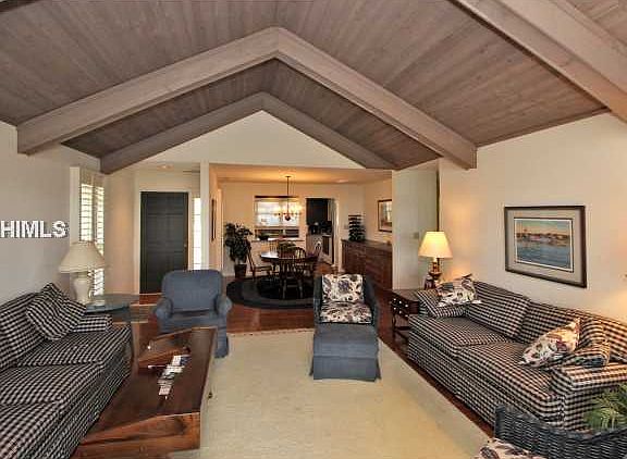 Oceanfront in Sea Pines. Unobstructed, 180 degree views of the ocean and sound with gorgeous sunsets. This 4 bedroom, 3 bath home has been renovated and very tastefully decorated; Custom crafted wood ceiling, hardwood floors,screen porch and large deck. An extremely high income rental property or deram home. Stroll along the beach, only steps out of your backyard. On-site pool, walk to all amenities in South Beach. Sea Pines Country Club membership is available to purchase at a discount. All of Lands Ends homes average 16-17 plus feet above sea level. See private remarks. (T0807123)