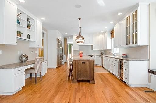 - Kit Dscrp: Pantry, Flooring - Hardwood, Countertops - Stone/Granite/Solid, Breakfast Bar / Nook, Kitchen Island, Stainless Steel Appliances, Open Floor Plan, Recessed Lighting, Wine Chiller, Walk-In Storage, Gas Stove, Lighting - Pendant, Crown Molding