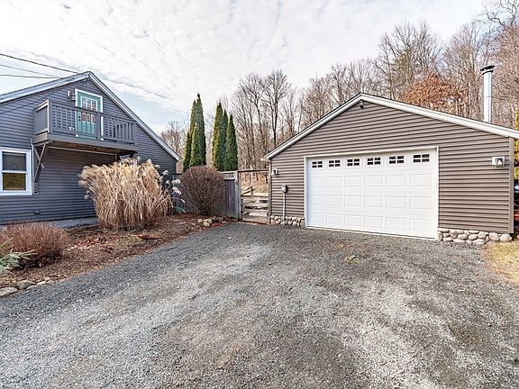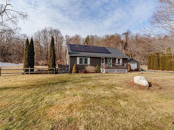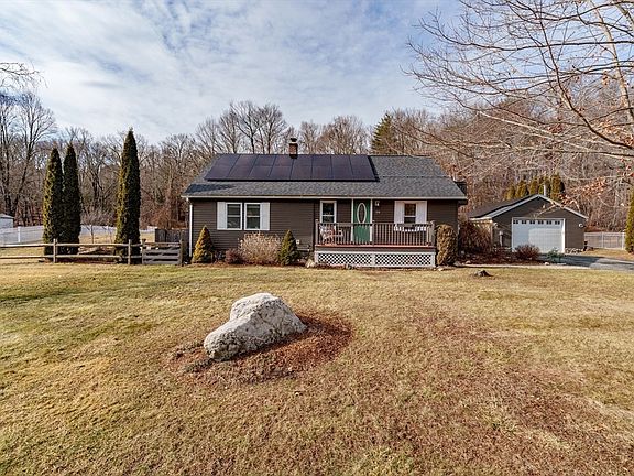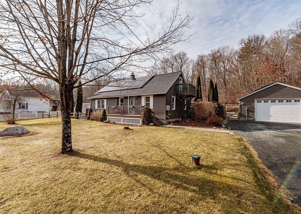 Charming Cape-style home that blends modern updates w/ timeless appeal! This 3-bedroom, 2-bathroom residence has spacious rooms, hardwood floors, & sunlight that pours in. The custom kitchen, w/ large center island, stainless steel appliances, & ample cabinet and counter space--perfect for entertaining. The living room offers plenty of natural light, making it the ideal relaxing spot. On the 1st floor, find a full bath w/ spa tub, walk-in shower, laundry, & a bedroom currently utilized as a home office. The 2nd-floor has the primary w/ au suite, nook, balcony & the 3rd bedroom. Recent upgrades add to the home's value & efficiency, including owned solar panels (2022), 50 year roof (2022), & added insulation (MassSave). Enjoy your backyard patio deck for BBQs, bird watching, & views of the woods. Oversized garage provides a workshop if needed w/ steel beam & overhead lighting. Tranquil sounds from Clear Falls across the street & quick access to Rt 66, this home is ready to make your own.