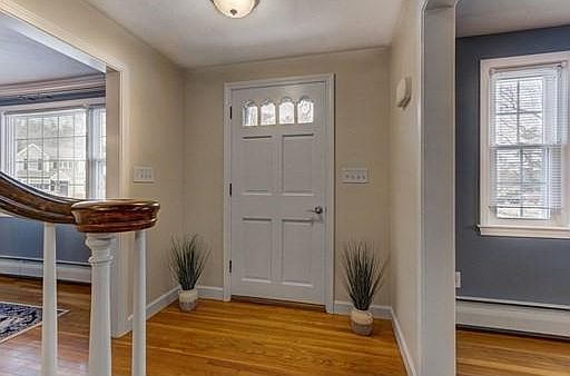 Welcome to 29 Lovering Street! Set on a corner lot next to the desirable Sunset Drive neighborhood, this beautiful colonial style home is ideally located less than a mile away from shopping, restaurants, McGovern Elementary, & Route 109. Bright & open floorpan on the main level with ample natural light pouring in through large three pane front windows. Spacious front to back living room with cozy fireplace & gorgeous custom built ins. Sun filled dining room that flows right into the kitchen with newer ss appliances (with warranty until 2024), granite countertops, pantry closet, and plenty of storage space. Bonus room off the kitchen - perfect for office, playroom, or guest/5th bedroom. Newly updated breezeway connects to the two car garage. Four bedrooms on the second floor with full bath. Basement offers additional storage space and option to finish. New shed, Buderus boiler, Town water/town sewer. Don't miss your chance to see this wonderful home!