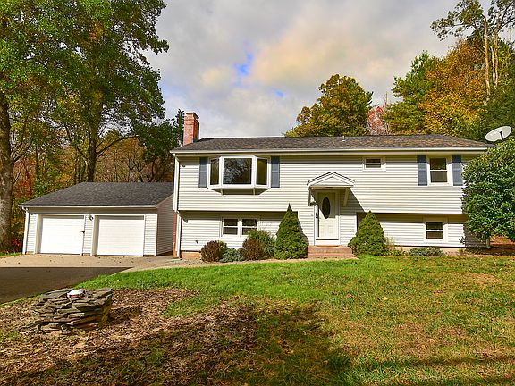 Spacious Raised Ranch in Bolton! Open floor plan. Remodeled kitchen with new appliances, plenty of cabinets, and recessed lighting. The living room has a stone fireplace and bow window. Beautiful hardwood floors in living room and two upstairs bedrooms. Remodeled Full bath completes the upper level. Downstairs in the walk-out basement is a family room and two more bedrooms, as well as a remodeled full bath! There is a 14x19 deck off the back to sit and enjoy! Vinyl siding. Roof 4 years old. New windows. 2 car garage. Generator stays.