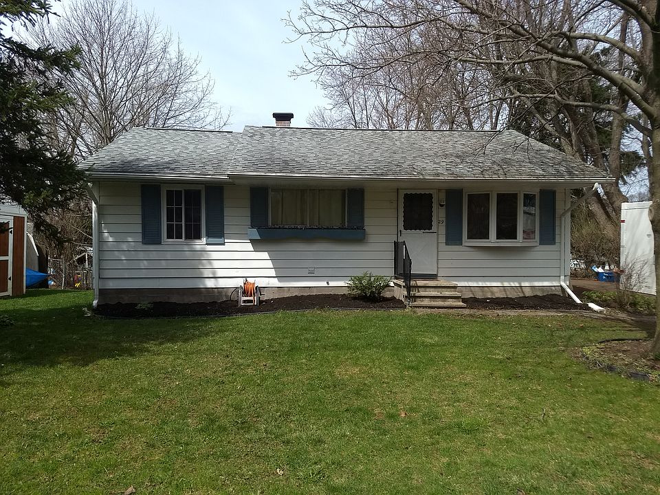 Easy living RANCH style home! Village location- walk to all! Vaulted family room with access to screened rear porch. Gas wood-stove. Eat-in kitchen with updated solid surface Corian counters, wood cabinetry, and appliances. Living room features a large front windows with views of the woods across the street. 3 good sized bedrooms. Full basement is a walk out to rear yard. Partially fenced yard with shed storage. Furnace hi-effc 2/2018 (set up for future central air). Basement has new sump pump and a new weather-proofing flap on basement exterior door. Washer/dryer negotiable-basement laundry set up. Please note-No garage. Roof approx 9 years. Updated landscaping 4/2019. Right near Ravenwood Country Club!