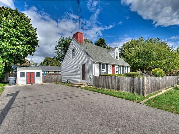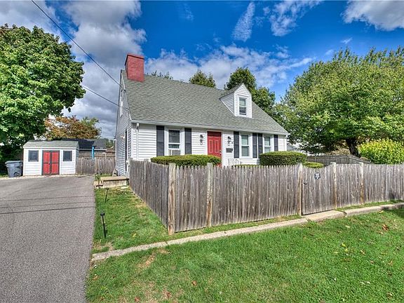 Welcome to this charming mid-century cape conveniently located near Hoxsie Four corners. Admire the Framed hardwoods in Living Room and hardwoods in all the bedrooms. Enjoy the Updated Kitchen including granite countertops, tile floor, Certified Cabinets, Kenmore SS appliances which include the 5 burner Gas stove, microwave, refrigerator and dishwasher. The Renovated bathroom has fiberglass tub with shower and single vanity sink. The interior and lower level have been painted with your favorite neutral colors. The primary bedroom is located on first floor while the 2nd floor offers 2 more bedrooms as well as space for possible 2nd bathroom. Town water and sewers. Natural Gas Heat. Heating system installed in 2018. 40 Gallon Gas Hot water tank installed in 2017. Unfinished Basement provides plenty of space for Exercise Room and storage. GE Washer & dryer remain in lower Level Laundry Room. Convenient Bulkhead. Relax around the firepit in backyard which is fenced around the back and side. Spacious 9 X 7'6" Shed for storage of garden tools, equipment and toys. Don't miss out on calling this lovely property your home.