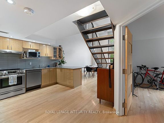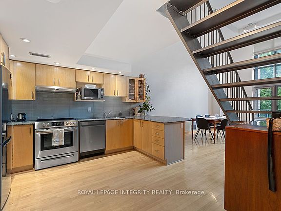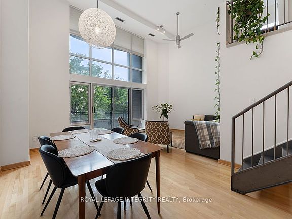Over 1,000sf of modern loft-style living in Suite 111 @ 29 Main St, The Glassworks by Charlesfort, designed by award-winning architect Barry Hobin. This 2-bedroom, 2-bath suite features an open-concept layout with gleaming hardwood floors, a sleek kitchen with granite eat-up breakfast bar, and 17-foot floor-to-ceiling windows that open to a private curved balcony (approx. 6' x 18') perfect for entertaining or relaxing. Upstairs offers a generous bedroom, full bath, walk-in closet, and ample storage. Residents enjoy a rooftop terrace with a BBQ and entertaining space, plus elevator access. Ideally located just a block from the Rideau Canal, walking distance to ByWard Market, Rideau Centre/LRT, Centretown dining, museums, and Lansdowne Parks concerts and sporting events. Quick access to Hwy 417 and nearby Canal and Rideau River trails make this urban oasis perfect for city living with a touch of nature. Don't miss this one!