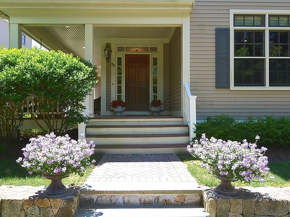 Part of the sought-after "On the Green Collection" at award-winning Olde Village Square, this elegant freestanding townhouse offers unparalleled luxury and design, featuring a wraparound covered porch and private gas-lit courtyard for effortless indoor/outdoor living in the heart of Medfield. Brazilian cherry floors, solid doors, magnificent windows and exceptional millwork define an open floor plan ideal for entertaining. The gorgeous dining room boasts a view of the garden and wood-burning fireplace in the living room. Custom inset cabinetry and Wolf/Miele appliances will impress the chef, while a handsome cherry library provides a quiet space to work or relax. Three spacious bedrooms upstairs include a hotel-style primary suite w/ tray ceiling, dual walk-in closets and spa bath. A mudroom, ample storage and 2-car garage w/ EV station comprise the lower level. Discover the very best in maintenance-free luxury living, just a short walk to top-rated schools, parks, shops & restaurants!