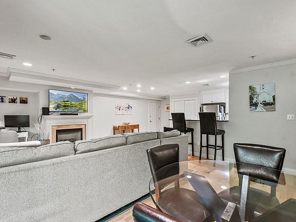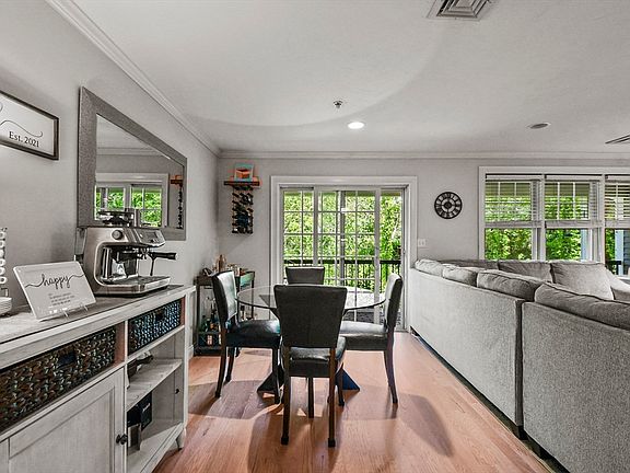 Step into this charming 2-bedroom, 2-bath corner unit nestled in the heart of Downtown Canton! The kitchen features stainless steel appliances, granite counters, upgraded cabinets and a breakfast bar. Cozy living room with gas fireplace, recessed lighting and a dining area that leads to a private balcony, perfect for morning coffee or evening relaxation. New in-unit washer/dryer '24 located in a dual-purpose closet and pantry. The spacious primary bedroom features a walk-in closet and a recently remodeled ensuite w/ double vanity and a linen closet. The second bedroom is generously sized and bathed in natural light. Newer hardwood flooring throughout and a second recently remodeled bathroom complete the unit. This unit comes with 1 garage space and 1 driveway space + visitor parking. New HVAC (’22). Enjoy the ease of one level living & the convenience of an unparalleled location, just a quarter-mile away from the Canton Commuter Rail, shops, & restaurants! Nothing to do but move in!