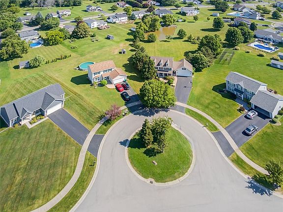 Great Home - Updated Throughout - Built 2003 on Cul-de-Sac, 2164 SqFt, 4 BD, 2 Full, 2 Half Baths, 1st Floor Laundry Room, Finished Walk-Out Basement with Office & .81 Acre Lot Backs to Pond and Mature Trees - Really Nice! Kitchen Open to Family Rm, Natural Wood Style Hi- End Luxury Vinyl Flooring Throughout 1st Floor - White Cabinets, Blue Cabinet Peninsula with Breakfast Bar to Angled Bay Eat-in Area, Quartz Counters, Sharp Marble Tile Backsplash, Recessed Lighting, Extra Cabinets & Counter Space at Microwave/Coffee Bar, Pantry Closet, SS Appliances Included & Cool SS Hood Fan, All Looks Great - Door to Back Vinyl Deck Overlooking Beautiful Yard, Stairs Down to Patio, 6 Person Hot Tub Included & Good 11x20 Storage Shed Space Under Garage - Family Rm with Corner Gas FPLC, Pocket Doors to Front Living Rm, Formal Dining Rm - 4 BDRM's Up, 2 year old carpeting, Big Primary BD, Walk-in Closet and Double Closet, En-Suite Bath, White Vanity, Tile Floor, Separate Shower & Soaking Tub! Nice Size Main Bath, White Vanity, Tile Floor, Tub/Shower - Great Finished Walk-out Bsmt, Hi-End Luxury Vinyl Flooring, 2x2 Acoustic Ceiling, Recessed Lighting, Wet Bar, Corner Gas FPLC, Full Size Windows, Powder Rm, Nice Bright Office with Closet Shelving, More Finished Space for Exercise/Play Rm, Door to Back Patio Under Deck - Furnace/ AC 2003, New Water Heater 2025, Sump Jet Backup System, 50 Year Architectural Roof 2003, Covered Front Porch, Stamped Concrete Walkway & Landscaping, Come See!