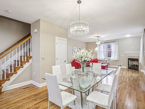This home features hardwood floors, recessed lighting, and window treatments throughout. The spacious living room is anchored by a cozy gas fireplace, while the two-zone HVAC system ensures personalized climate control year-round.