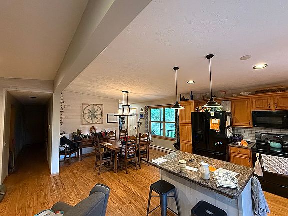 This home is situated at the end of a lane on top a hill very secluded, surrounded by trees. The porch featuring trex decking and vinyl railings. Deck wraps around the house so you can enjoy sun and shade all day. This home features beautiful hardwood floors throughout. The house has a finished basement done in 2022 featuring a second kitchen, bedroom, full bath, laundry room, family room and theater.