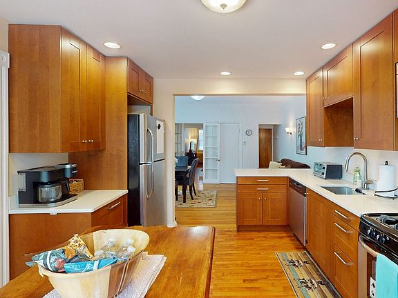 Spacious bi-level two-bedroom home in vibrant North Cambridge, just minutes from Davis, Porter, and Harvard Squares. With a Walk Score of 92, this prime location offers easy access to the Red Line at Alewife, Route 2, and the shops and restaurants along Mass Ave. and Fresh Pond. The home features 1,500 sq. ft. of thoughtfully designed living space. On the first floor, you'll find a large living room with a sleeper sofa, piano, and flat-screen TV. A formal dining room with additional seating and a cozy nook adds charm, while the renovated kitchen includes cherry cabinets, quartz countertops, a breakfast bar, and stainless steel appliances. A full bathroom with a stand-up shower completes this level. The second floor offers two comfortable bedrooms. Each is furnished with a queen-sized bed, dresser, and TV. A second full bathroom is also located upstairs. The lower level includes a washer and dryer for added convenience. Outside, a private backyard with a table and chairs provides an inviting space to relax on warm summer evenings. Pets are considered on a case by case basis. There is an additional $150 pet cleaning fee per pet as the apartment has to go through a special cleaning after your stay. Guests bringing pets will be required to sign a pet contract. Free parking on premises. Pack n' Play and High top chair available upon request for $10 per night. For any stays 28 days and longer an additional cleaning fee of $100 will be charged. North Cambridge, a neighborhood in Cambridge, Massachusetts, is characterized by its diverse community and mix of housing options, including single-family homes, apartment buildings, and condominiums. The area is known for its family-friendly atmosphere and strong sense of community. Parks like Danehy Park offer residents recreational opportunities with walking and biking trails, sports fields, and playgrounds. North Cambridge is well-connected to the rest of the Boston area, with several MBTA bus routes serving the neighborhood and the Alewife Red Line station providing easy access to downtown Boston. The neighborhood's proximity to major roadways like Route 2 and Interstate 93 also makes it convenient for commuters. Overall, North Cambridge is a vibrant and welcoming neighborhood with a lot to offer its residents. A $150 lost key fee applies. Self check-in and check-out are available, and a welcome booklet will be emailed two weeks prior to arrival, including property information. Arrival instructions with a navigational application will be sent 3 days prior to arrival. Smoking and parties are not allowed. All guests must maintain a primary residence elsewhere and agree to abide by house rules, maximum occupancy, and payment terms. No subletting or unauthorized guests.
