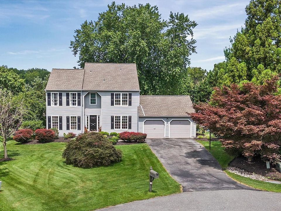 Buyer Bonus! $10,000 settlement help plus price reduction! Welcome to resort-style living in the desirable Pike Creek community of Morningside! This stunning 4-bedroom, 2.5-bath home sits on a quiet cul-de-sac and boasts one of the largest lots in the neighborhood. The property is beautifully landscaped with low-maintenance plantings, and a private backyard retreat features Trex Deck, expansive views, and a fabulous in-ground pool—perfect for both entertaining and relaxing. Step inside to a bright Foyer with hardwood floors, leading to an open floorplan. The main level offers a versatile Office/Living Room with crown molding, French doors, and abundant natural light, as well as a formal Dining Room with chair rail, crown molding and designer chandelier. The updated Kitchen impresses with tile flooring, Corian countertops, tile backsplash, recessed and designer lighting, and a center island with seating. A sunny Breakfast Room opens to the dramatic Family Room, highlighted by new carpet, vaulted ceilings, gas fireplace with tile surround and hearth, and wet bar. The Sunroom addition provides even more space, with soaring ceilings, skylights, oversized windows, and sliders to the Deck. Upstairs, a graceful turned staircase with a Palladian window leads to four spacious bedrooms, two full baths, and a convenient laundry area. The Primary Suite features a walk-in closet, ceiling fan, and an updated spa-like Bathroom with granite topped dual vanity, oversized glass shower, tile floor, and linen closet. The additional Bedrooms are light-filled with generous closets and ceiling fans, while the hall Bath offers a dual-sink vanity and tub/shower combo. The expansive finished walkout Lower Level provides flexible living space with three large areas, ample closets, a utility/storage room, and sliding doors leading to the backyard. A storage room was added (under the Sunroom addition) and is ideal for pool and yard equipment. Located just minutes from Paper Mill Park, White Clay Creek State Park, shopping, schools, and major highways, this home combines convenience with luxury. Upgraded appliances, flooring and lighting. Pool added 2004, 2 story Sunroom addition 2003. Don’t miss your opportunity to enjoy resort-style living in Morningside! All room sizes are approximate.