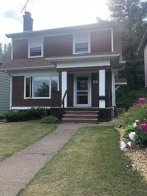 Located in the Smithville addition of West Duluth. This house is in a quiet half moon road tucked up to woods with trails connecting you to Magney-Snively Natural Area. Spirit Mountain is close by as well and all can be reached by foot on the intersecting trail systems of the area. Original home has a addition off the back that goes two stories with the Family Room and Master Bedroom. There is one full bath on second floor and 1/2 bath off the Family room. Floors are hardwood in the dining, front, 2 smaller bedrooms and half of master. Wood burning fireplace in front/living room. Master bedroom has an en suite full bathroom with a jetted tub. You enter master through an area with two large closets and have the option to close off the two areas with glass doors. The two other bedrooms have nice sized closets. All bedrooms are on the second floor. The family room to the rear of the house has a half bath and patio door to the deck. This area is carpeted. The rear deck is new and dimensions are 18x12 with side privacy walls. The front porch is covered with plenty of room to sit. The driveway is gravel and shared with a neighbor. This leads to the detached garage in the back. The garage has power and heat with a parking and work area. Above the garage is a storage area separate from the garage. There is one other entry on the side that leads to the basement and kitchen area. Selling agent commission negotiable.
