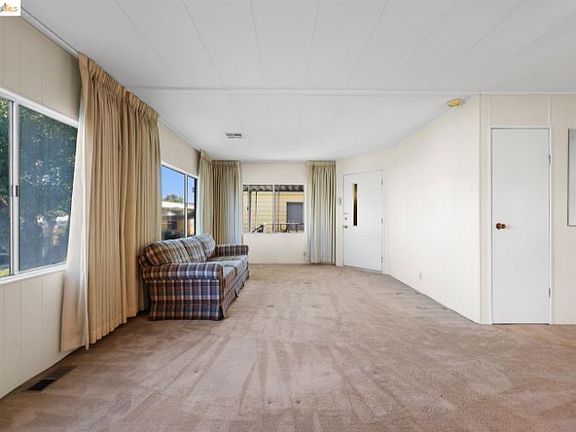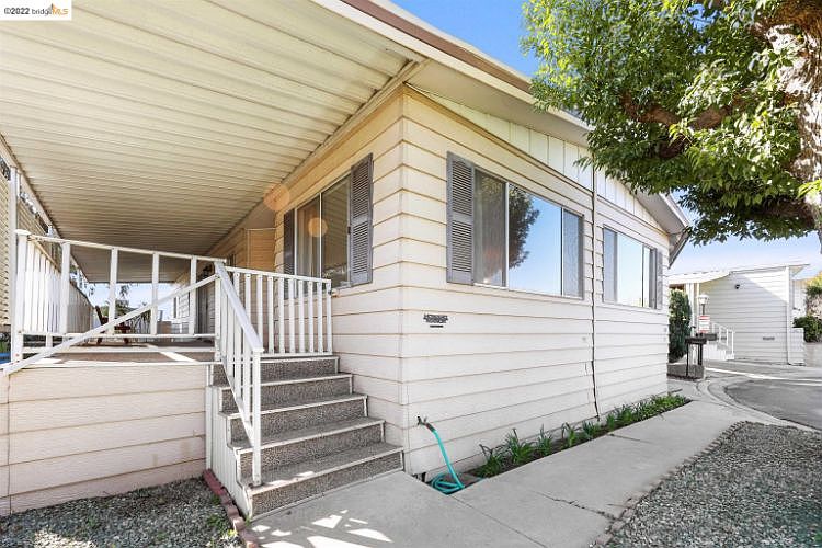 Great Location! Double-wide. Spacious 2 bedroom, 2 bathroom is clean and ready for its new owner - just needs some TLC to make it your own. The home sits in the quiet age55+ Bandera Estates mobile home park and is ready to be lived in or ready for an investor. It features a Gus-Guard Stabilizer System which prevents slippage due to earthquakes and wind. Warranty is transferrable. Also includes central heat and AC, covered carport, large covered side deck, washer dryer, refrigerator, dishwasher, double oven in the spacious kitchen, 2 sheds. Park features a recreation meeting room, pool and jacuzzi. Directly adjacent to "The Tracks" exercise path for walking and biking. Backs up to a quiet church parking lot. Home is being sold As-Is. Buyer must agree to paint the exterior within 90 days of moving in and can pick from a wide assortment of allowable paint colors approved by management. Max of 2 pets allowed per home, and they must be approved by management.