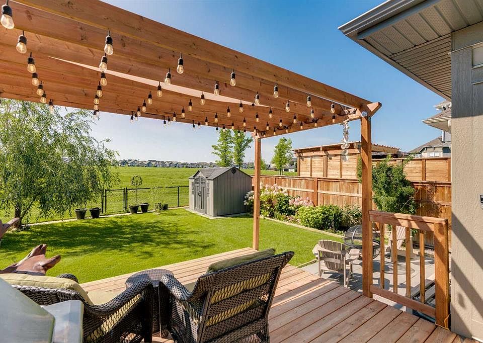 Welcome to 29 Masters Terrace SE – a beautifully designed two-story family home located in the highly sought-after, peaceful lake community of Mahogany. From the moment you step inside, you’re greeted by a grand front foyer and an impressive sense of space with 9 ft ceilings and luxury vinyl plank flooring throughout the main level. The open-concept design seamlessly connects the living, dining, and kitchen areas, creating the perfect flow for both family living and entertaining. At the heart of the home is the chef’s kitchen, showcasing full-height neutral cabinetry, quartz countertops, a large island, built-in wall oven, gas stove, and premium stainless-steel appliances. The extended dining nook opens directly onto your pressure treated deck, where you can sip your morning coffee or host summer BBQs while overlooking your beautifully landscaped, south-facing backyard. With mature trees, thoughtful design, and direct access to a large sports field and green space, this outdoor oasis is both private and functional. The upper level is designed with comfort and versatility in mind. A huge bonus room makes the ideal family retreat for movie nights, or a kids’ play area. A spacious laundry room with extra storage adds convenience. Two generously sized bedrooms provide plenty of space for the family, while the luxurious primary suite offers a walk-in closet and a spa-inspired ensuite featuring a quartz double vanity, soaker tub, and a separate glass shower. Additional highlights include: pleasant front curb appeal on a quiet street, mature landscaping front and back, functional and spacious main floor layout and water softener system included. This stunning Mahogany home combines elegance, functionality, and location. With south-backing green space and a thoughtfully designed interior, it’s a perfect fit for growing families who want both beauty and practicality.