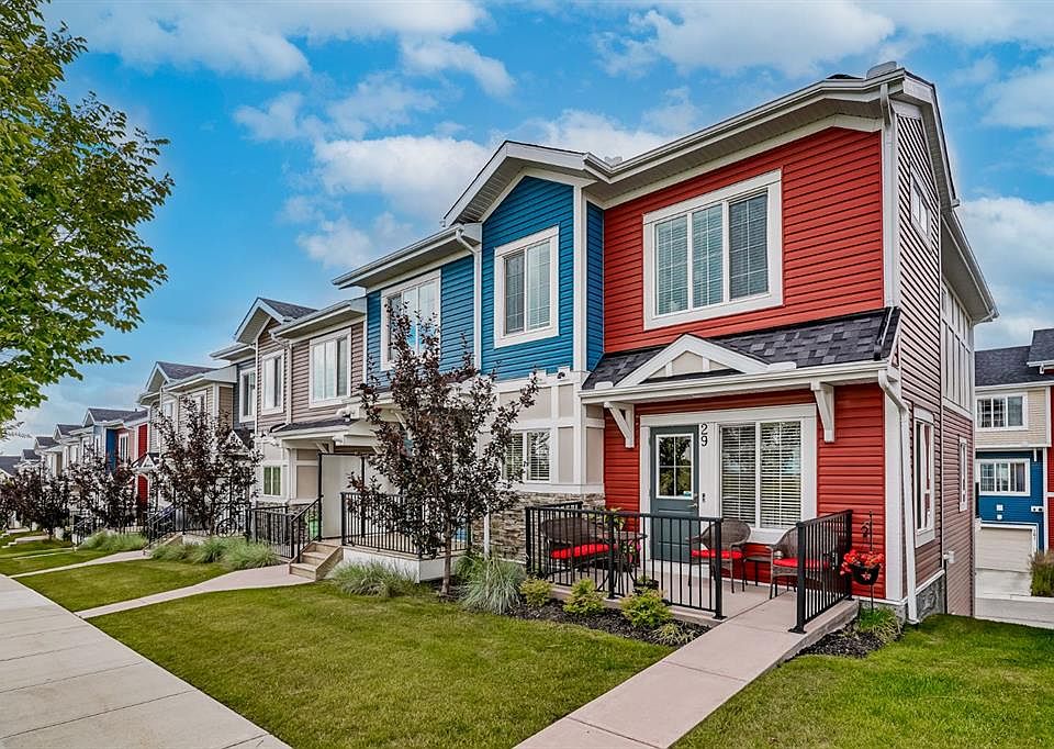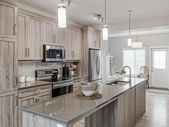Open House · Sunday, October 5th · 12–2PM This meticulously maintained end unit townhouse in Carnaby Heights, Nolan Hill offers over 1,600 sq. ft. of total living space and one of the most desirable locations in the complex, directly across from a lush greenspace. With its end-unit bump-out, extra windows, and triple pane windows throughout, the home is filled with natural light, quiet comfort, and energy efficiency. The main floor features a bright open-concept design with 9 ft ceilings, upgraded finishes, and a kitchen with quartz countertops, upgraded Samsung appliances, soft-close cabinetry, and a spacious island. Step out to the oversized balcony with a gas line for BBQs, perfect for entertaining. A large main floor laundry room and powder bath add day-to-day convenience. Upstairs are three bedrooms and two full bathrooms, including a spacious primary retreat with walk-in closet and ensuite. Additional features include Hunter Douglas blinds, central air conditioning, a NAVIEN tankless hot water heater, and a heated attached double garage with a large storage area. With snow removal and landscaping included, this home offers low-maintenance living just steps from parks, pathways, schools, and the shops and dining of Beacon Hill. With greenspace views, premium upgrades, and abundant natural light, this end unit rises above the competition and is truly one of Nolan Hill’s finest.