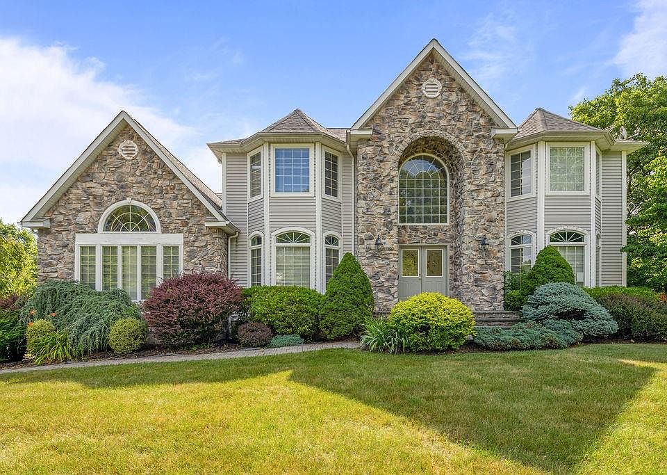 The property offers five bedrooms, four bathrooms, hardwood floors, and a cozy living room with a fireplace. The fully finished basement includes a kitchen area and additional bedroom. Outside, the flat and expansive property invites relaxation and enjoyment.