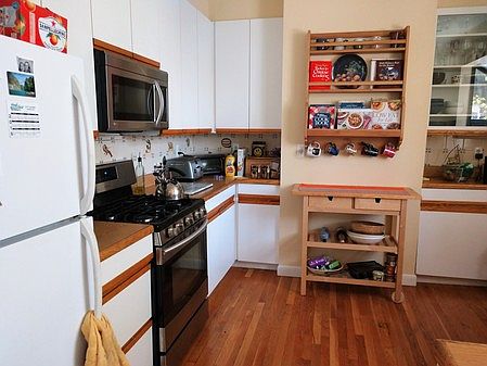 This 2400+ sq ft duplex (2nd & 3rd floor) boasts private front and back decks on a picturesque tree lined street in Coolidge Corner/JFK Square. The unit's expansive 2 floor layout, with full bathrooms on each floor, allows for bedroom or den/office spaces on either level. Off the eat-in kitchen that overlooks the back yard and flower gardens, is a generously sized dining room with two sets of French doors. One that opens to the living room with bay windows, and the other end opening to a full deck that overlooks the back yard. Rounding out the 1st level are Beautifully refinished (2017) 1st level bathroom. The 2nd level has great natural light flowing through the 2 bedrooms, large master, and oversized bathroom with skylight and large jetted tub. The master bedroom includes vaulted ceilings, ample closet space, and its own balcony. The wood floors and walls have been recently freshly refinished, and kitchen appliances updated. The owner lives and works in the first floor unit. The pave stone driveway provides tandem parking for one vehicle. Located only a few blocks from the Coolidge Corner/Devotion School, Coolidge Corner, top grocers (B-Fresh, Butcherie, Star Market & Trader Joe's), and numerous coffee shops, bakeries (Clear Flour Bakery, Kupel's), pubs, restaurants and retail. Trash removal is included, but the tenant is responsible for their own city trash bags. Please NO students or pets. THIS LISTING IS EXCLUSIVE TO UNLIMITED SOTHEBY'S INTERNATIONAL REALTY