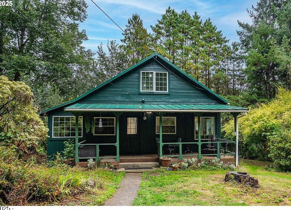 Welcome to this beautifully maintained 4-bedroom, 2-bathroom home offering 1,717 sq ft of comfortable living space on 1.57 acres. Perfectly situated just minutes from HWY 20, you'll enjoy the convenience of being 5 minutes to Toledo, 13 minutes to Newport, and 45 minutes to Corvallis—while still nestled in a private, peaceful setting surrounded by forest, valley, mountain, and pasture views. The secure, solar-powered gated entrance leads you down a fir and fern-lined driveway to a circular drive with ample parking and easy pasture access. Outdoor amenities abound with a large greenhouse crafted with salvaged historic glass, a 32x32 fenced garden with native river loam soil, a 32x20 root crop bed, orchard space with heirloom apple, cherry, hazelnut, walnut, pear, and grape varieties, plus