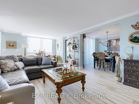 Southeast exposureCarpet free livingStunning flooringPot lightsCrown moldingBeautiful kitchenCorian counters