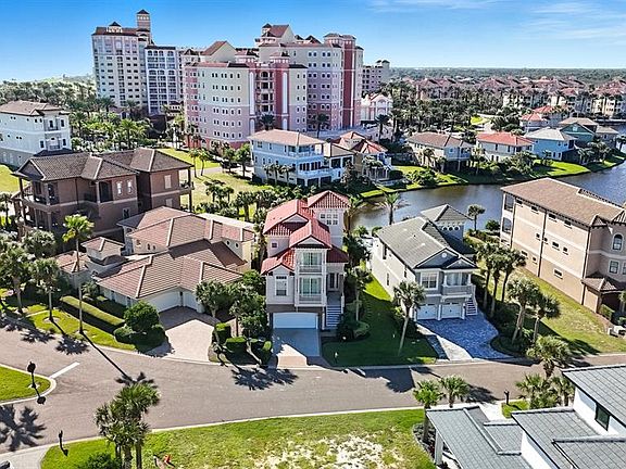 Welcome to 29 Northshore Avenue, an extraordinary 5-bedroom, 4.5-bath, four-story coastal retreat tucked inside the private, gated community of Northshore Estates within Hammock Beach. Perfectly positioned just steps from the Atlantic Ocean, this residence captures the essence of relaxed luxury living, offering generous indoor and outdoor spaces designed for both family comfort and effortless entertaining. A bright, tiled foyer greets you on arrival, with a sunlit staircase leading to the second-floor main living area. Here, an open-concept design connects the kitchen, dining, and living spaces framed by large windows that fill the home with natural light and offer sweeping views of the pool, lake, and Hammock Beach Resort tower beyond. The kitchen features stainless steel appliances, granite countertops, a large center island with cooktop, and abundant cabinetry—perfect for preparing meals or hosting gatherings. The adjoining living and dining areas open to a spacious tiled balcony where you can dine outdoors and enjoy the soothing ocean breeze. This main level also includes two guest bedrooms, one with a private balcony overlooking the lake and golf course across the street, plus a full bath, a half bath, and a well-appointed laundry room with utility sink and built-in cabinets. The third floor showcases the primary suite and an additional en suite guest bedroom, both with private balconies and walk-in closets. The primary suite offers peaceful lake views and a spa-inspired bathroom with dual vanities, soaking tub, large walk-in shower, and separate water closet. On the top level, a cozy loft-style reading nook awaits—bathed in natural light from surrounding windows—creating an ideal spot for quiet reflection or a home office. The ground floor is designed for entertainment and extended-stay comfort, featuring a large media or game room with wet bar and wine fridge, a guest bedroom with sliding glass door access to the patio, a full bath, and additional storage. Step outside to your private lakeside oasis, where a sparkling pool is surrounded by paver decking, lush landscaping, and an aluminum fence—offering a perfect setting for hosting gatherings or simply relaxing under the sun. Located within walking distance of the beach and just moments from Hammock Beach Resort, this home delivers the best of coastal luxury and convenience. Optional membership to the Hammock Beach Club provides access to an unmatched collection of amenities including oceanfront pools, championship golf designed by Jack Nicklaus and Tom Watson, a world-class spa, fitness center, tennis, fine dining, and vibrant social events—all just minutes from your doorstep. Whether as a full-time residence, vacation getaway, or investment opportunity, 29 Northshore Avenue offers exceptional design, prime location, and the ultimate Hammock Beach lifestyle.