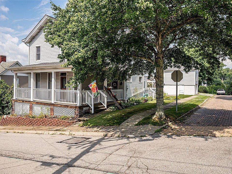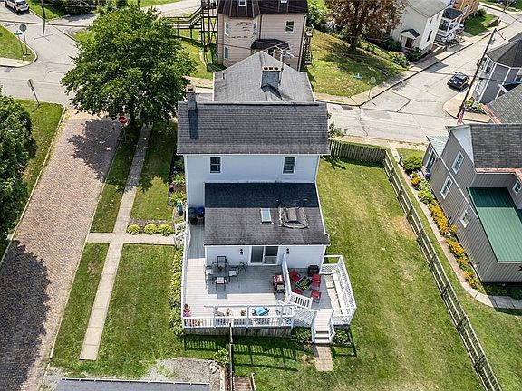 MOVE IN READY. 3 BEDROOM, 2 FULL BATH FARMHOUSE STYLE 2 STORY. SPACIOUS WRAP-ROUND FRONT PORCH [39X7]. FORMAL ENTRY [5X3]. LIVING ROOM [17X15] W/ GAS FIREPLACE. LARGE EAT-IN KITCHEN [15X14] W/ ACCESS TO LARGE DECK AREA . LARGE 1ST FLOOR FORMAL DINING ROOM [15X13] W/ LEADED GLASS POCKET DOORS OPENING TO FAMILY ROOM [15X14] W/ DECORATIVE FIREPLACE & BUILT-IN SHELVING & STAINED GLASS WINDOWS. DEN/ OFFICE [8X6] ADJACENT TO KITCHEN. ACCESS TO LARGE GATED & TERRACED TREX-TYPE DECK [18X14 - UPPER LEVEL - 10X15 LOWER LEVEL] - WHICH OPENS TO FENCED YARD. MASTER BEDROOM W/ WALK-IN CLOSET; BEDROOM #2 W/ EXPOSED BRICK WALL [15X11]; & BEDROOM #3 [12X12]. GAMEROOM [15X14] - LOWER LEVER. LAUNDRY AREA INCLUDES WASHER & DRYER W/ WALK-OUT TO FENCED YARD. 1 CAR GARAGE W/ UPPER LEVEL WAITING TO BE COMPLETED - ROUGHED IN FLOORING/WIRING.WINDOW AND STUDDING. 3 ADDITIONAL OFF-STREET PARKING AT REAR OF PROPERTY.