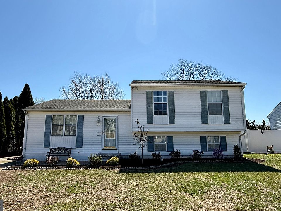 Charming Split-Level Home with Bright, Airy Layout and Spacious Backyard! Boasting a professionally landscaped front yard, this 3-bedroom, 1.5-bath split-level home offers both comfort and potential in a lovely neighborhood. North and south-facing windows fill the home with natural light, creating a bright and welcoming atmosphere throughout. The kitchen features ample cabinetry, newer appliances (including fridge, dishwasher, and range), and an adjoining dining area—perfect for everyday meals and entertaining. A brand new washer and dryer (2024) are conveniently located in the finished basement. Upstairs, enjoy a spacious master bedroom with an attached half bath, plus two additional good-sized bedrooms. The full bathroom is centrally located and functional. The finished basement offers a flexible space ideal for a cozy living room, recreation room, or home theater. Additional recent upgrades include a heat pump (2020), hot water heater (2023) —providing added peace of mind and value. The fenced backyard offers excellent privacy, perfect for outdoor enjoyment. Relax or entertain on the low-maintenance Trex floating deck, and take advantage of two sheds for ample storage. The home is in good condition structurally and mechanically, but with your choice of paint and carpet, you can easily transform it into your dream home. It is being sold **as-is** to settle an estate, presenting a fantastic opportunity for customization. Don’t miss your chance to own a solid home with tons of potential in a desirable neighborhood!