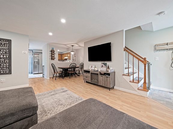 Spacious 2 bedroom, 1 1/2 bath, Townhouse with loft, at Old Meetinghouse Green. Beautiful grounds with plenty of privacy surrounded by woods and lush greenery. This unit features a nice open floor plan on the first floor with a large living room and dining room combo, and 1/2 bath. Great kitchen with a cut-out to the dining room, breakfast nook and slider to a large deck overlooking the woods. The second floor has 2 good sized bedrooms. The main bedroom has a loft level that adds additional space for an office, gym or what ever you want it to be. The full bathroom has a Jacuzzi tub and double sink. The basement is large with a walkout slider to a patio. Gas FHA Heating system and A/C were replaced in 2023. Tankless on-demand gas water heater. 2 deeded parking spaces. This is a great place to call HOME!