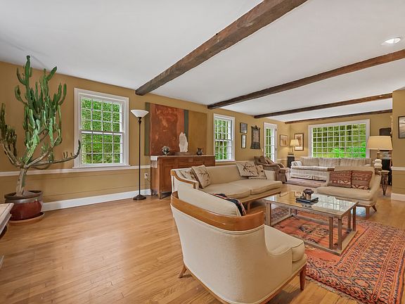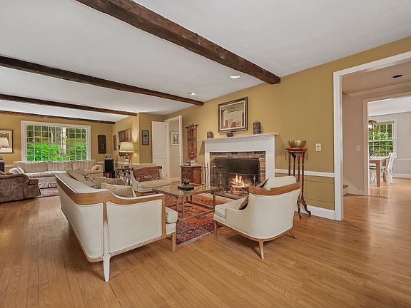 This distinctive Colonial offers tremendous curb appeal on a peaceful country road. It provides scenic views overlooking a nature preserve, the Saugatuck Reservoir & Trout Brook Trails & is just 15 minutes from downtown Westport. The thoughtful layout of this welcoming residence is perfect for seamless entertaining, both inside & on the expansive terrace that overlooks the naturally landscaped yard. Meticulously maintained, the home offers a versatile floor plan, including a potential In-law or Au-Pair Suite within the Office/Studio wing.The main level features an airy, front-to-back Living Room with a fireplace & historic wood beams, a Chef's Kitchen that flows into both the Dining Room & a bright Breakfast Room & a spacious Family Room with its own fireplace. The Den, complete with a full bath, presents an ideal option for a first-floor Bedroom.Upstairs, you will find five generously sized Bedrooms, including the Primary Bedroom with a walk-in closet & beautiful en-suite bath, plus a private Guest Room that includes its own full bath. The finished lower level is home to a comfortable Playroom (featuring the home's third fireplace & a pool table area) & a well-appointed Laundry Room. This residence has seen numerous high-quality improvements, including new AC, furnace & new hardwood floors in multiple rooms (a complete list is available upon request). This exceptional home is located in the sought-after town of Weston, known for its award-winning Blue Ribbon Schools.