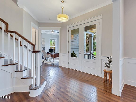 Pristine 4 bed, 3.5 bath, 3,867 sq ft like new home in the Paddocks. Built in 2017, this incredibly spacious, light and bright home features a gorgeous kitchen with quartz countertops, lavish master suite with plenty of storage, wood flooring throughout, and 10' ceilings on the main level. Slide open your 4-panel sliding door fully and walk out to your private screened in back patio with a wooded view. 2nd-story features large rooms with plenty of organized closet space. Oversized 2 car garage underneath w/ enough space to fit a boat. Gated Community includes pool and clubhouse access. Close to shops, restaurants, and HHI beaches.