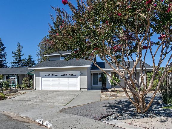 Beautifully updated 4-bedroom, 3-bath home located in a quiet East Petaluma neighborhood. With 2,084 square feet of thoughtfully designed living space on a generous 8,516 square foot pie-shaped lot, this home offers comfort, functionality, and room to grow. Step inside to find a tastefully remodeled kitchen that seamlessly blends modern style with an antique gas range, perfect for everything from casual breakfasts to entertaining guests. The open-concept layout flows into inviting living and dining areas filled with natural light. Step down to the family room with its wet bar and backyard access. A bedroom and full bath are located on the ground floor. Upstairs, the spacious primary suite provides a peaceful retreat with an en-suite bath and ample closet space. Two additional bedrooms and a full bath ensure room for family, guests, or a home office. Outside, the expansive yard offers incredible gardening and play areas thanks to the wide, pie-shaped design. Conveniently located at the end of a cul-de-sac, the easterly-facing home enjoys morning sun in the front and afternoon sun in the backyard. Near parks, top-rated schools, shopping, and Hwy 101, this home combines suburban comfort with city access.