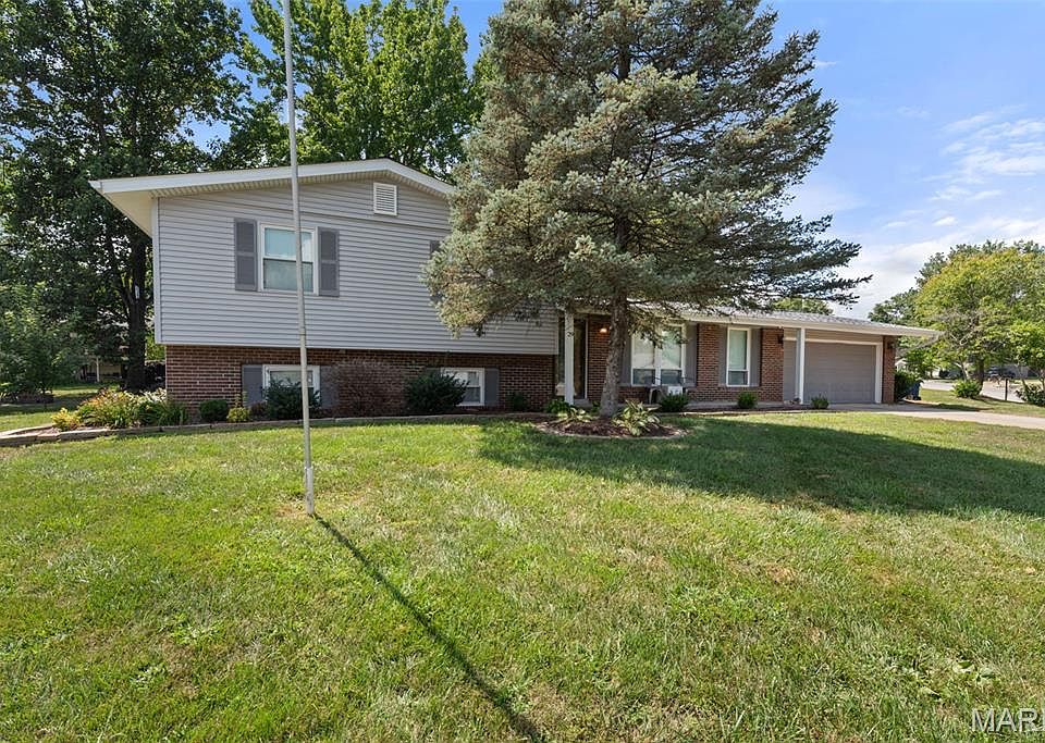Upstairs includes 3 generous bedrooms and a full bath. The finished lower level offers a large cozy carpeted family room with a wood-burning fireplace, adding extra living space and warmth. Seller is using LL Bedroom as Primary & primary bathroom that is beautifully updated with a walk-in shower (granite tile), newer vanity, and toilet. Additional highlights include: Updated Baths & Kitchen , Newer, front door & upgraded windows, Large Front Yard yet plenty of yard space in the rear that has a enclosed Patio & Outside Patio for Grilling! Ample storage room with built-in shelving—ideal for a home gym, 2-car garage and large driveway for extra parking Located in a quiet neighborhood with access to Lake St. Louis amenities—boating, fishing, beaches, tennis, clubhouse & more!