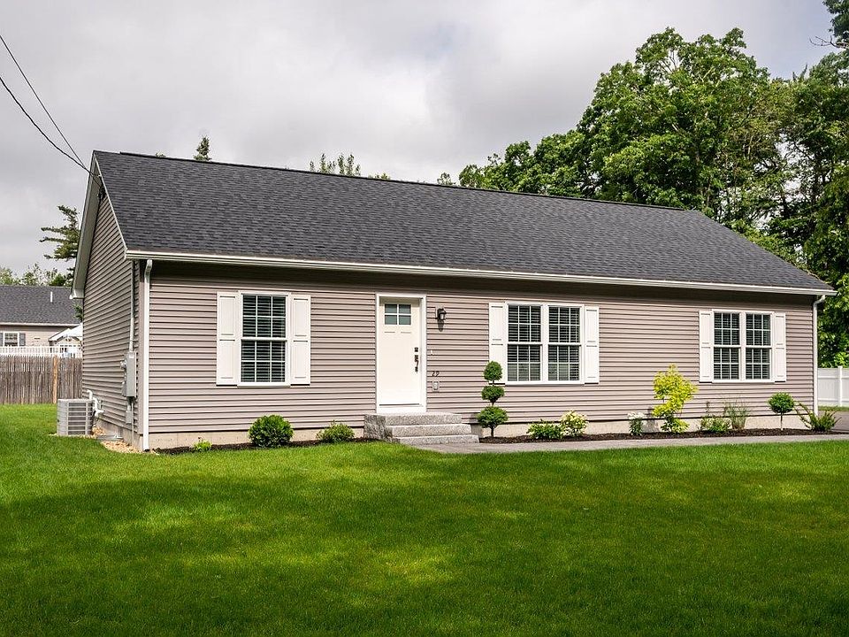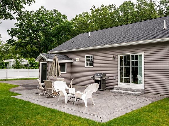 $50,000 PRICE REDUCTION!!! 3 years new this beautiful ranch offers single level living with a great floorplan. The cook’s kitchen is spacious in size with stone countertops, bead board cabinets and stainless appliances opening to the family room. Sunny primary bedroom and ¾ bathroom with stone vanity and tile flooring, plus 2 additional bedroom and full bathroom with 1st floor laundry. Solid ¾” hardwood white birch flooring throughout. Full basement with doghouse bulkhead makes easy access with lots of storage. Central air conditioning and lawn irrigation. Enjoy entertaining in your private yard fenced on 3 sides with large stamped concrete patio and plenty of room for gardening. Great expansion possibilities in the full basement with over 7 foot ceilings, great for a recreation room or office. Seabrook season beach parking sticker for all residents. This location provides easy access to the “Rail to Trail” that connects to Newburyport. Easy commute to Route 95, shopping, restaurants and schools.